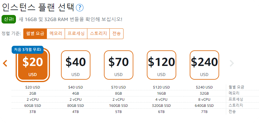 비용 또한 서버호스팅에 견주어 보면 굉장히 메리트 있던 터라 즉시 LightSail 에 새로운 인스턴스를 생성했습니다.