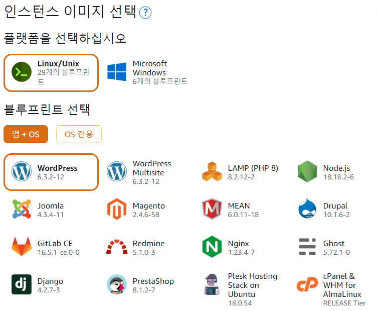 빠르게 서비스를 이용하고자 하는 경우에는 앱이 포함된 인스턴스를 생성하는게 좋으나 설치환경이 본인 입맛에 맞게 되어 있지 않아 Amazon 에서 제공하는 앱별 운영 가이드를 참고해야 할 수 있습니다.